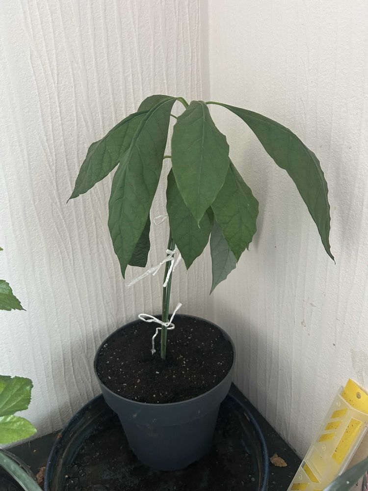 枝が曲がってるのでまっすぐにしたいので棒と紐で縛ってみました🤔