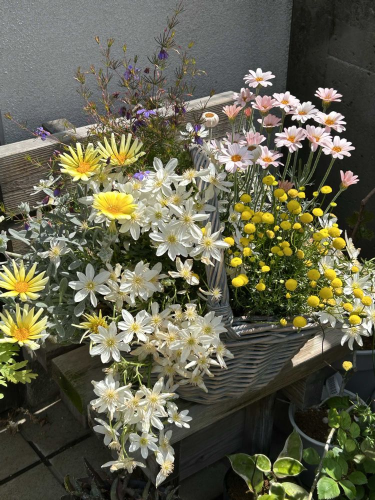 西向き玄関&東向きテラスでお花を育ててます。寄せ植えが好きで、大きくなったコたちは実家の花壇にお嫁入りしてます。
