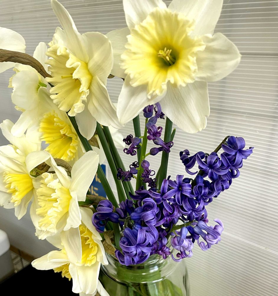 スイセンとヒヤシンスの組み合わせ良いですよね🤍💜