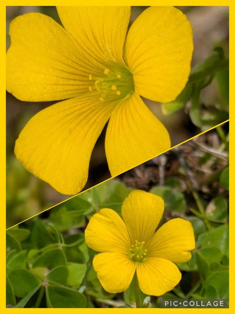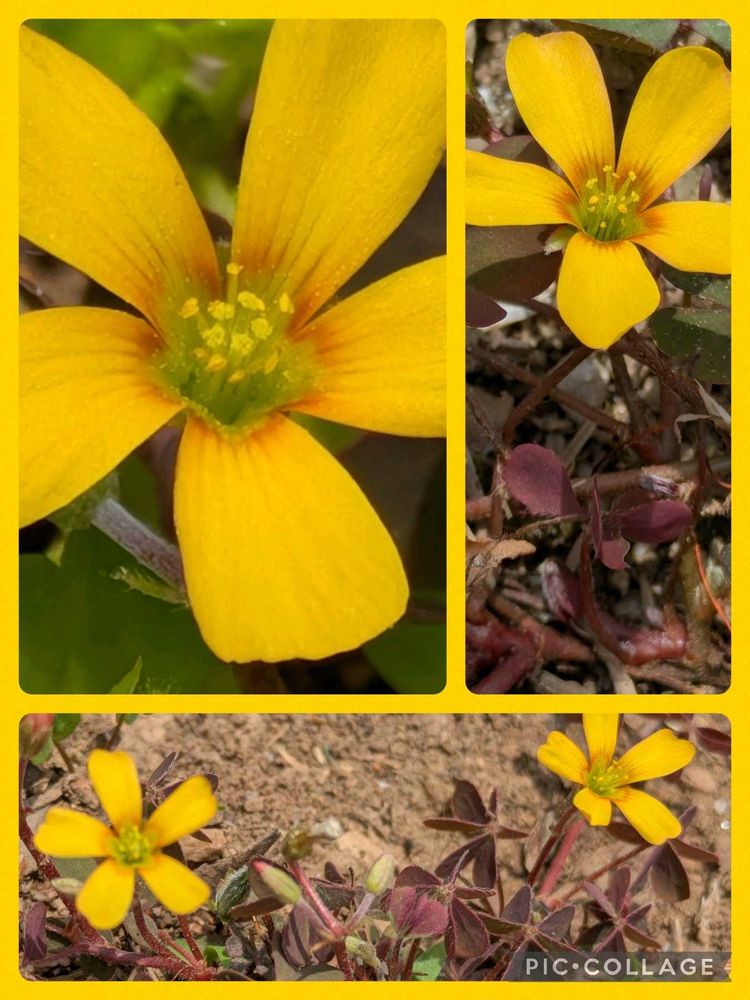 ②アカカタバミ 葉と花の中央が赤いです