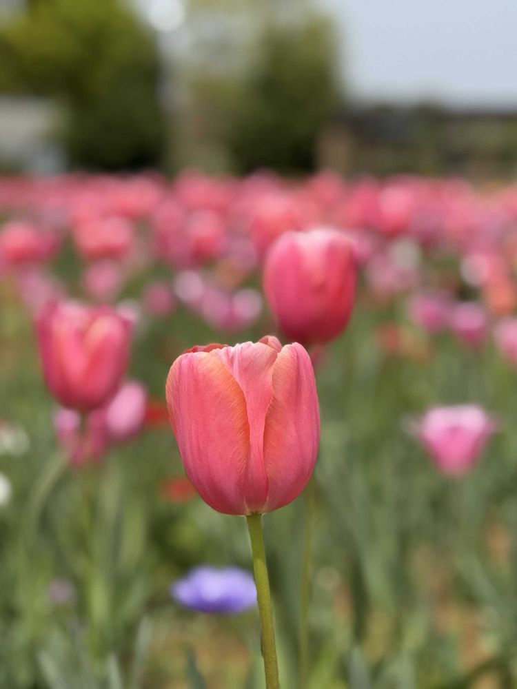 手前の淡いオレンジ色のチューリップ、良いなぁこの色、ちょっと独特な色で。見つけたら即買いの色です。