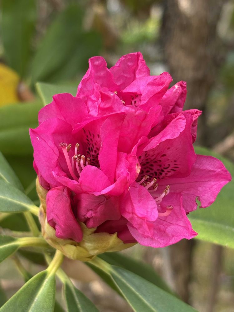 朝、蕾だった西洋シャクナゲ、今日の暖かさで、花が開いてきました🤭