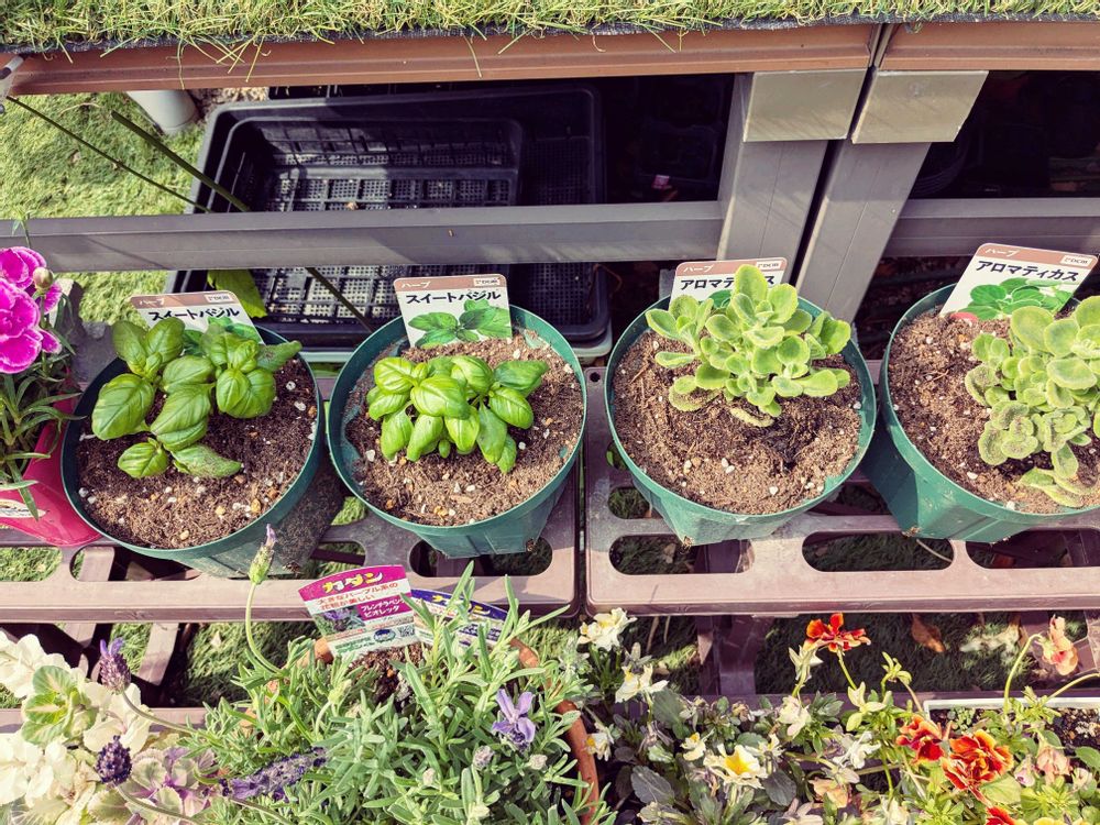 昨年冬に枯れて復帰無理そうだったので、アロマティカスとバジル新苗購入しました。ハーブの越冬は難しいですね。