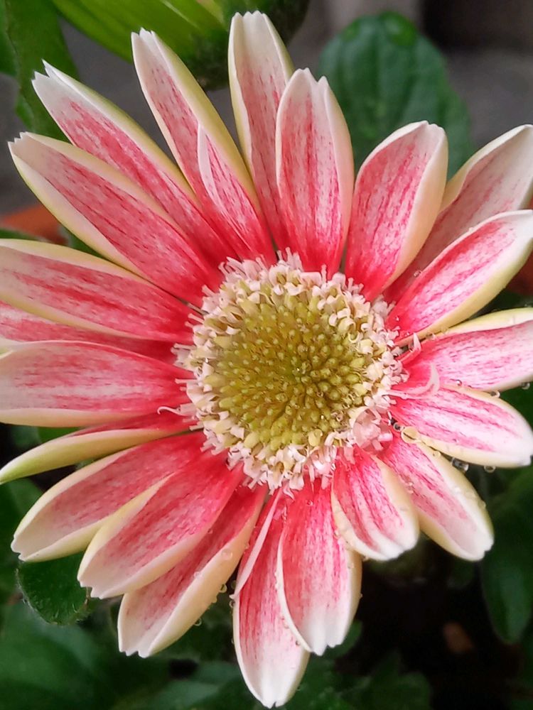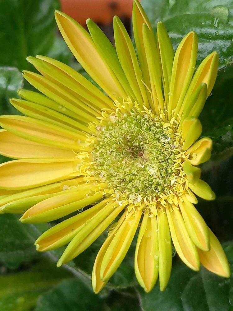 咲きかけのガーベラは花びらも花芯も素敵ですね。
