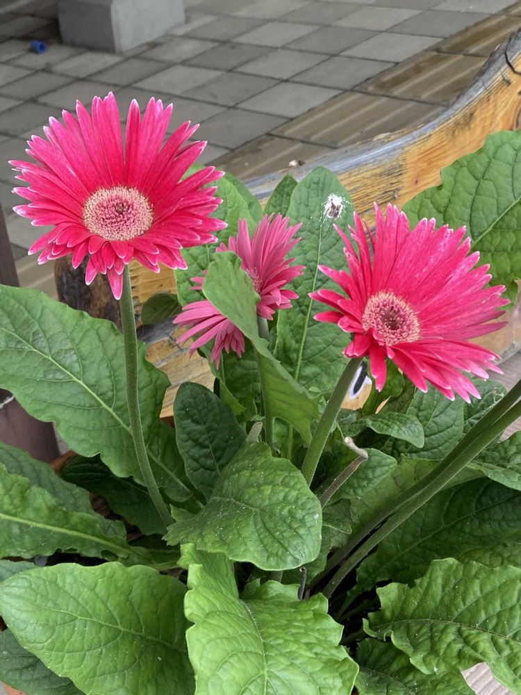 ガーベラの赤は年越ししても咲いてました〜♬可愛いでしょう🩷