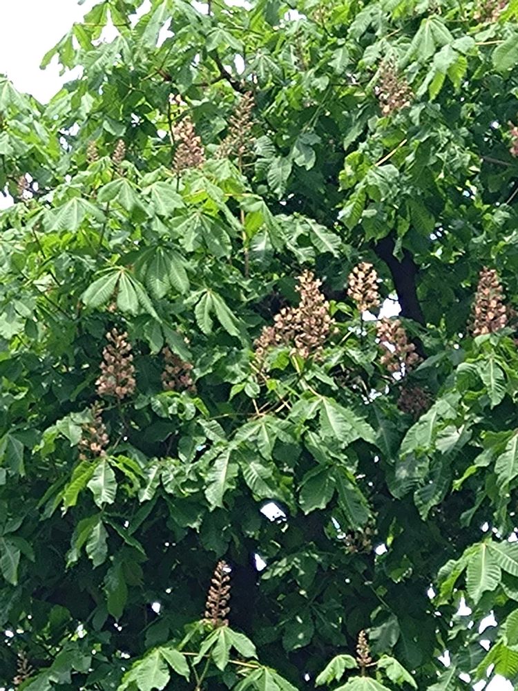 トチノキか、西洋トチノキ(マロニエ)と思うけど、周囲のベンチでランチ中の人が多くて近付けず。