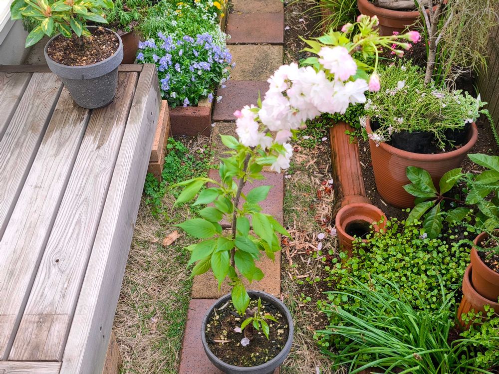 昨年の桜の終わりの時期にホームセンターで確か300円程度のお値段でお迎えした松月桜🌸