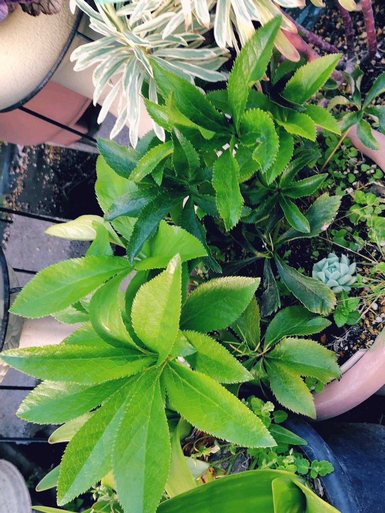 クリスマスローズ、気付けば葉がデカくなってました。花が見れるのも近いかな?