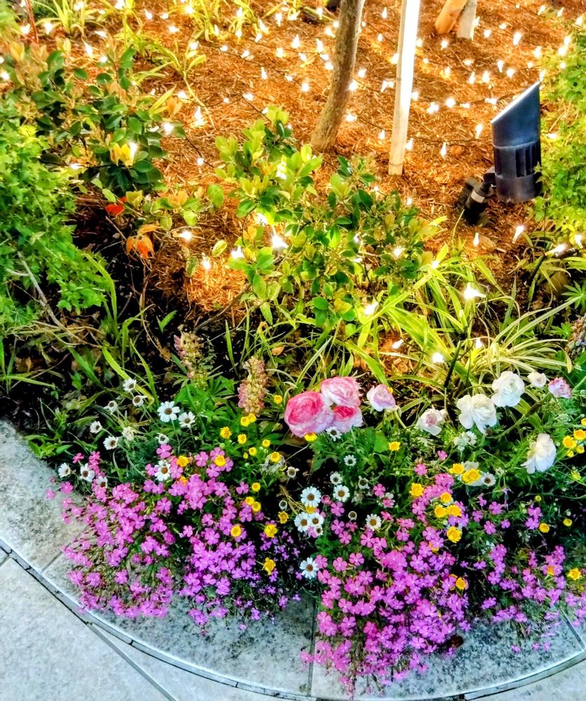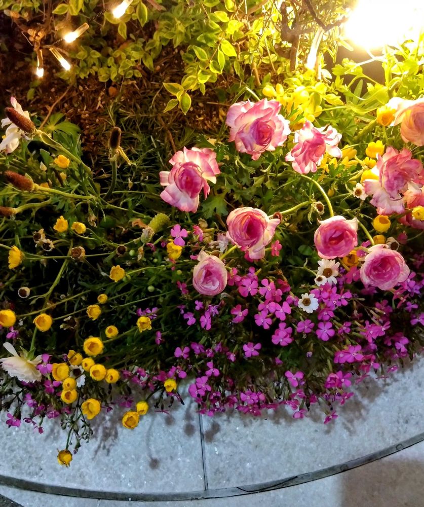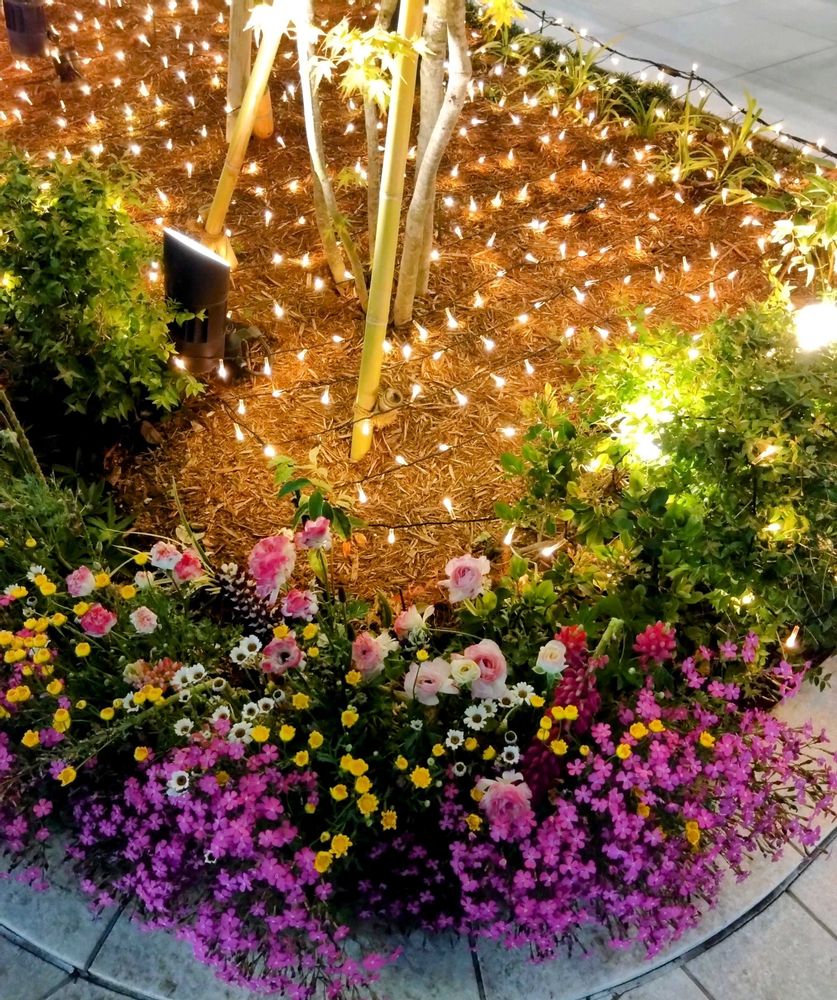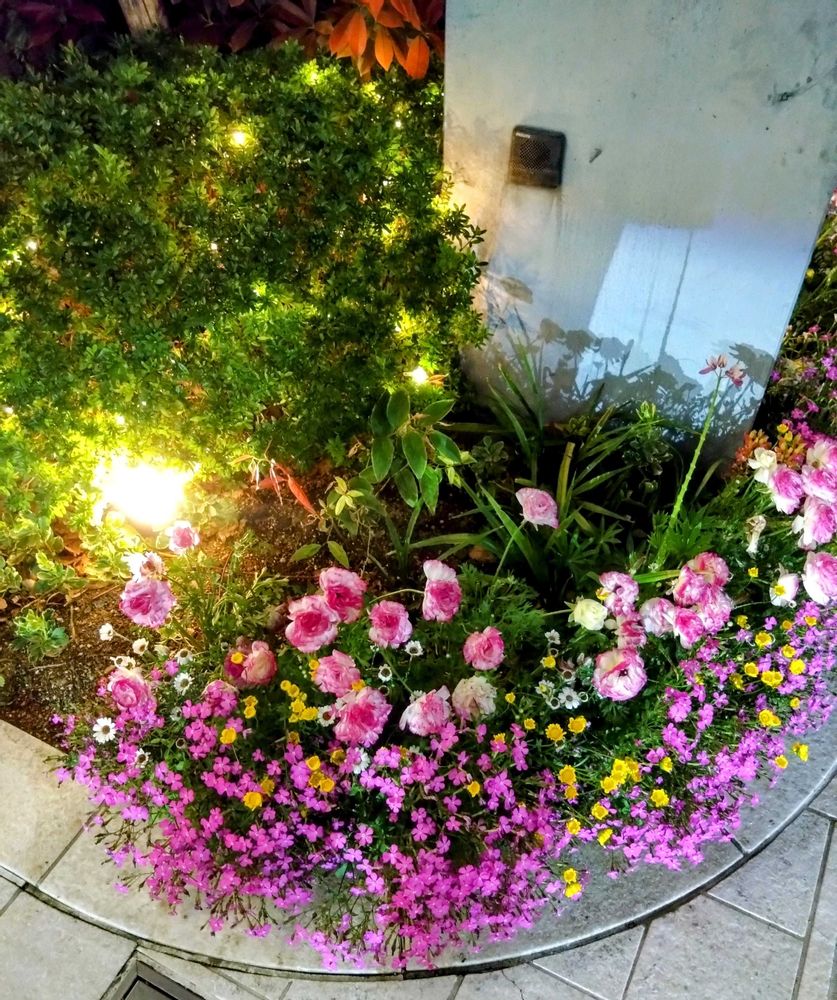 シレネ、クリサンセマムムルチコーレ、ルピナス等がライトアップされて華やか✨でした。