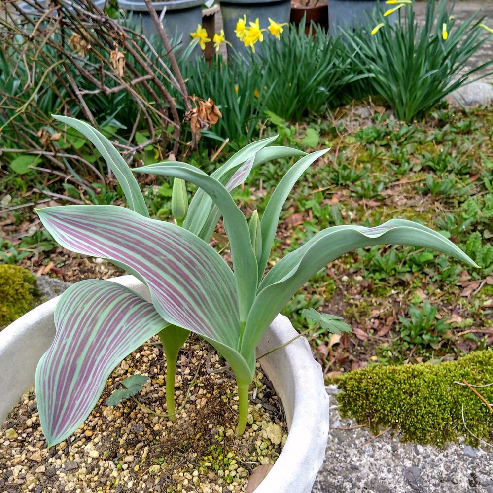 ②原種チューリップ グレーギー プレジールのストライプの葉(•ө•)💚
