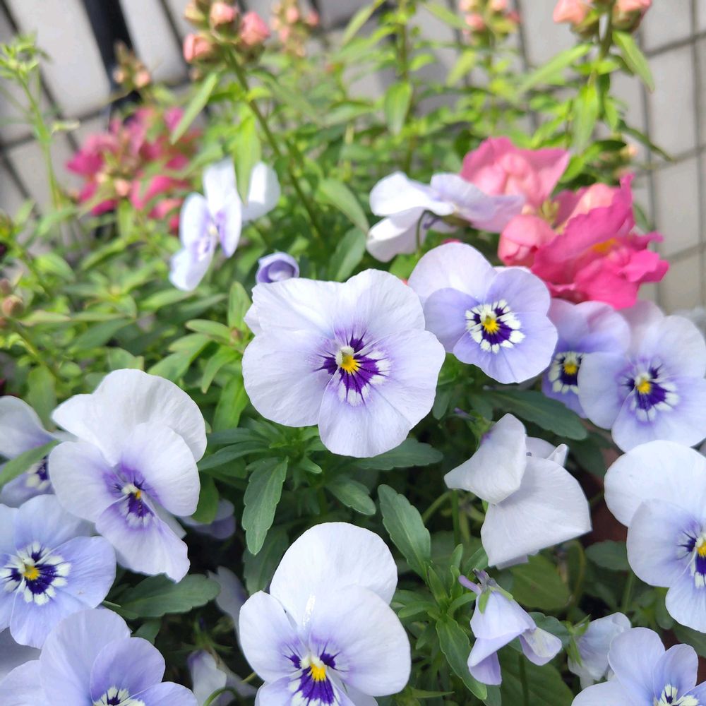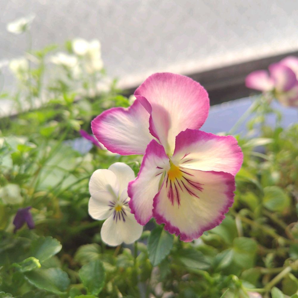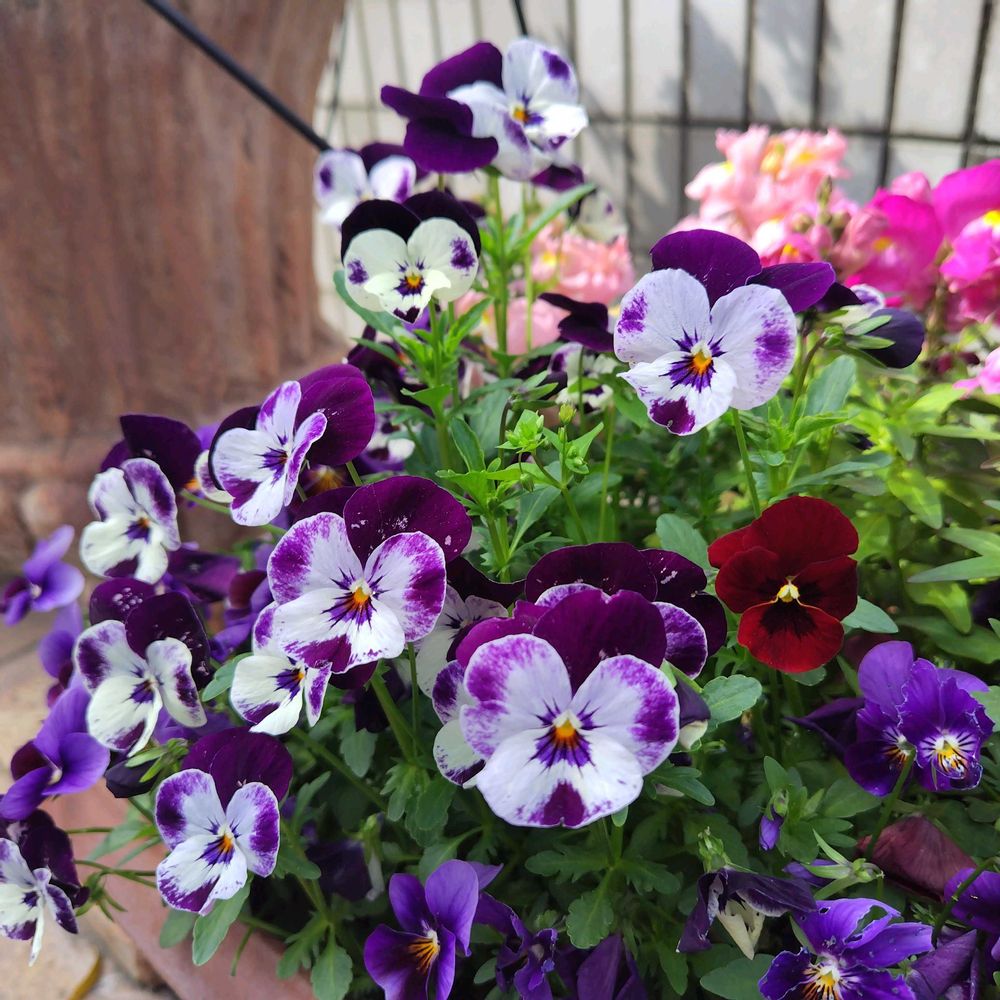 1、のベランダのパンジーちゃんピンクの縁どりで、めちやかわいい♥️♡(๑♡∀♡๑)ですね。