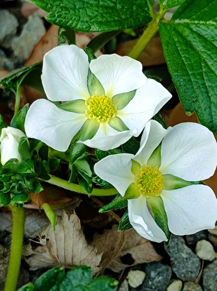 こんばんは☺️今日は日中暑かったですかね🥲夏が思いやられます😅姫ウツギさんが綺麗に咲きました💮2枚目は見元園芸さんからお迎えしたガーデンストロベリー(パインベリー)🍓のお花💮💕可愛い実をつけてくれますように🙏
