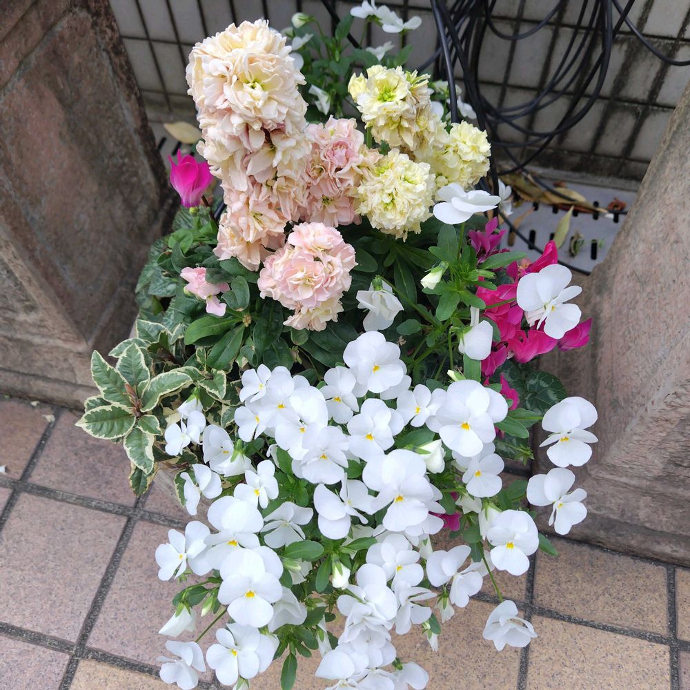 寄せ植えがとっても綺麗でまとまって💐素敵過ぎ✿︎˘︶˘✿︎ ).。.:* ♬︎*゜