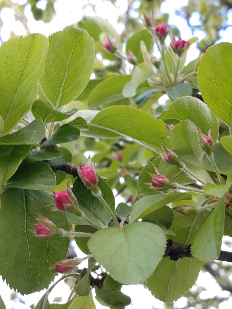 まだ表情が硬いお寺のヒメリンゴの蕾たち