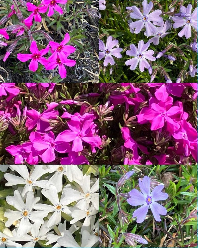 散歩道で,出会ったいろんな色合いのシバザクラ、コラージュしてみました😄