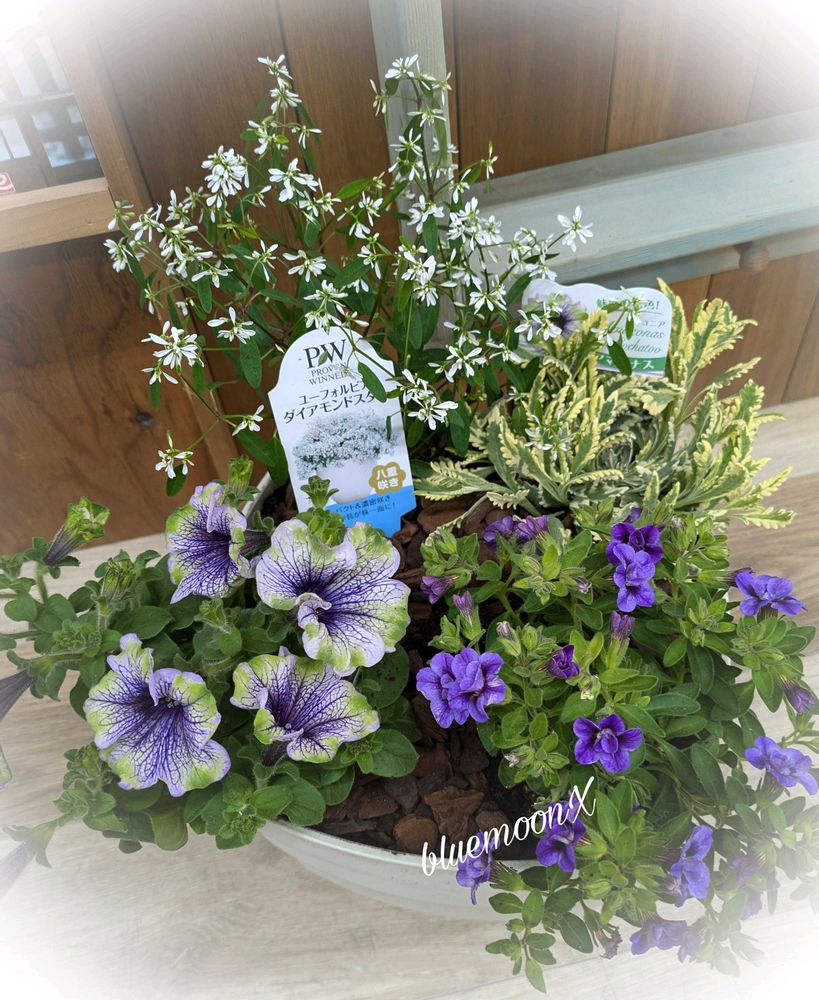 ブルームーンXさんの八重咲きカリブラコア,八重咲きカリブラコア,斑入りラベンダー メルローの投稿画像