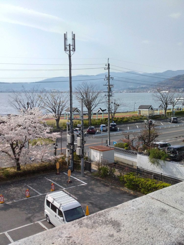 4️⃣諏訪、岡谷の桜は真っ盛り。松本より標高が高いせいでしょうか。写真は片倉館の屋上から見た諏訪湖