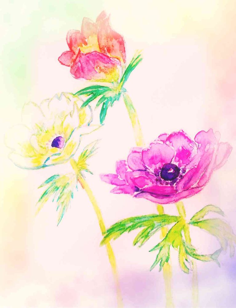 どうしたらアネモネの花の可愛らしさが表現できるか模索しながら色を少し変えてみたりしました。どちらが好きかは人によって違うかもしれないです