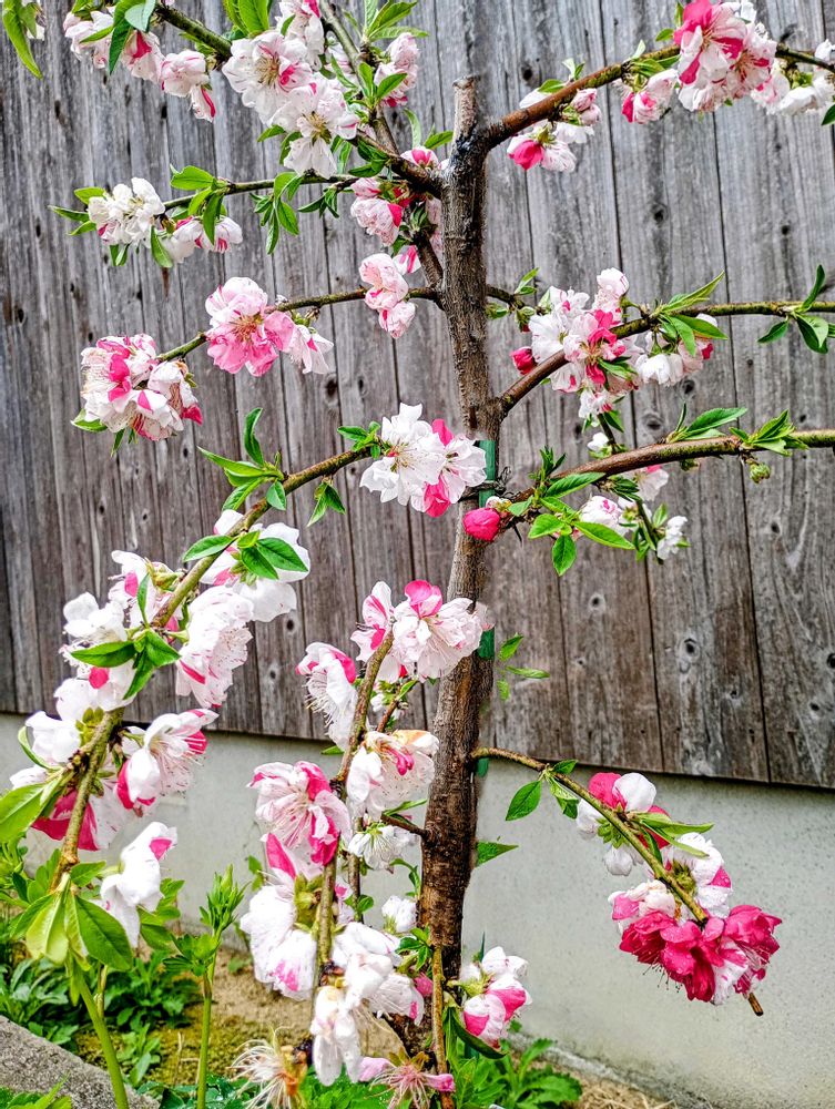 昨年迎え、🔰初開花の花桃「🏷️咲き分け枝垂れ源平」も満開ですヽ(^。^)ノ