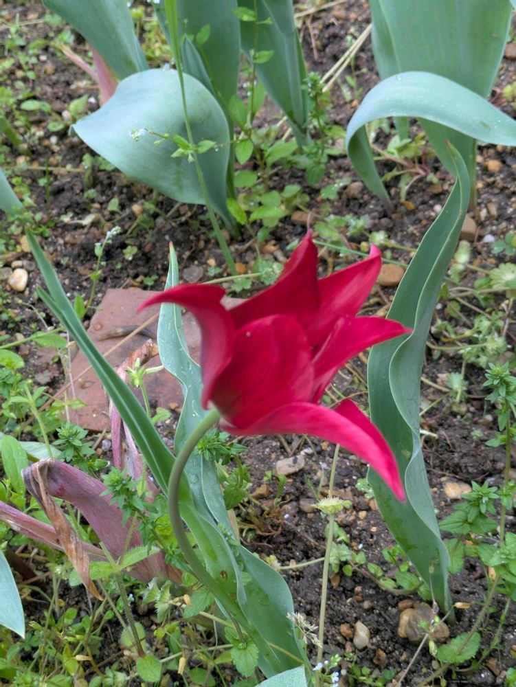 てもわ庭に、黒いチューリップが、一つ生き残っています。🖤🖤🖤