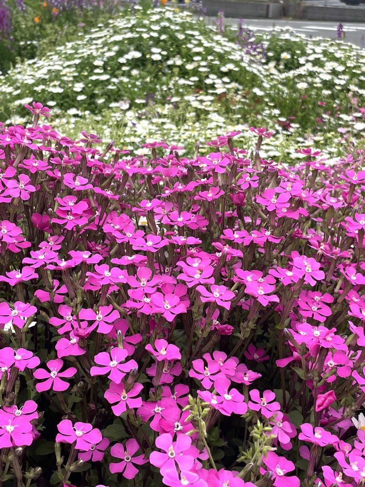 爽やかなシバザザクラさんいっぱい〜中に白いお花が隠れて咲いていますね🤍✨