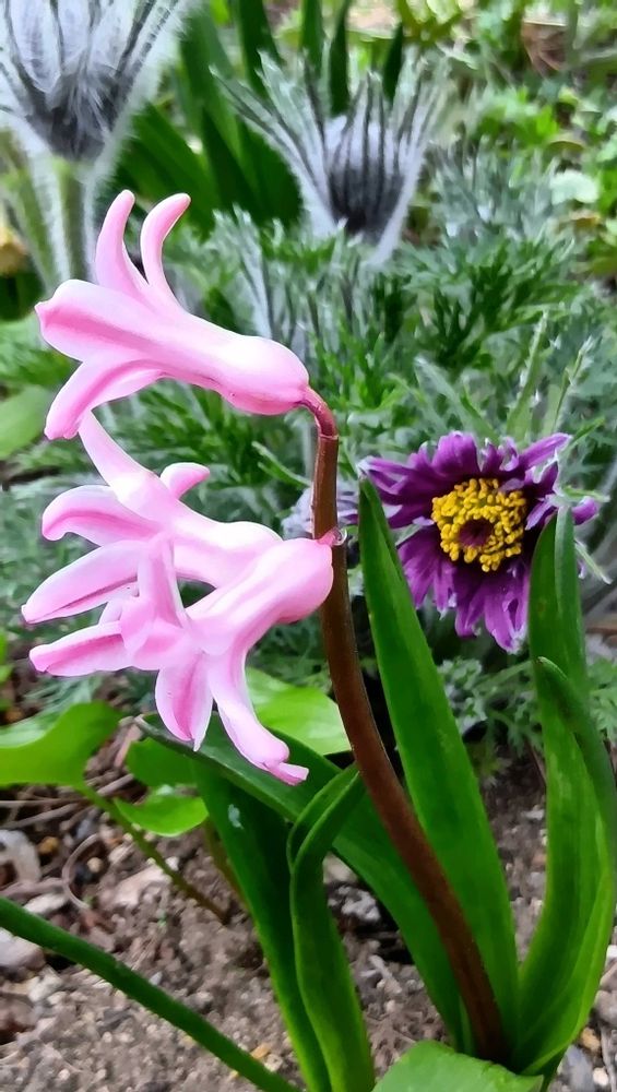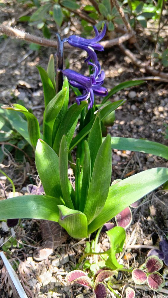 モミジの木の下のおきな草さんと、ヒアシンスさんです。