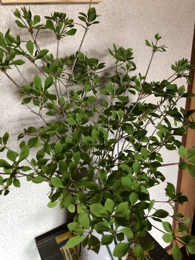 ドウダンツツジ〜🌿イキイキと勢いのある 枝ぶり 新芽🌱枝先の生命力✨綺麗な緑💚花瓶🏺も素晴らしい👍 春ですね❣️眼から休まり 癒されますね〜☺️