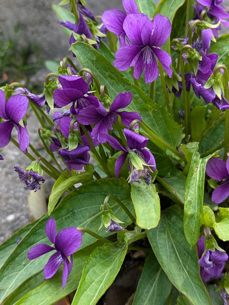紫金山公園入口に面する道路脇のコンクリートの割れ目から今まで見て来たのとは異なる背が高くモリモリのスミレを発見。