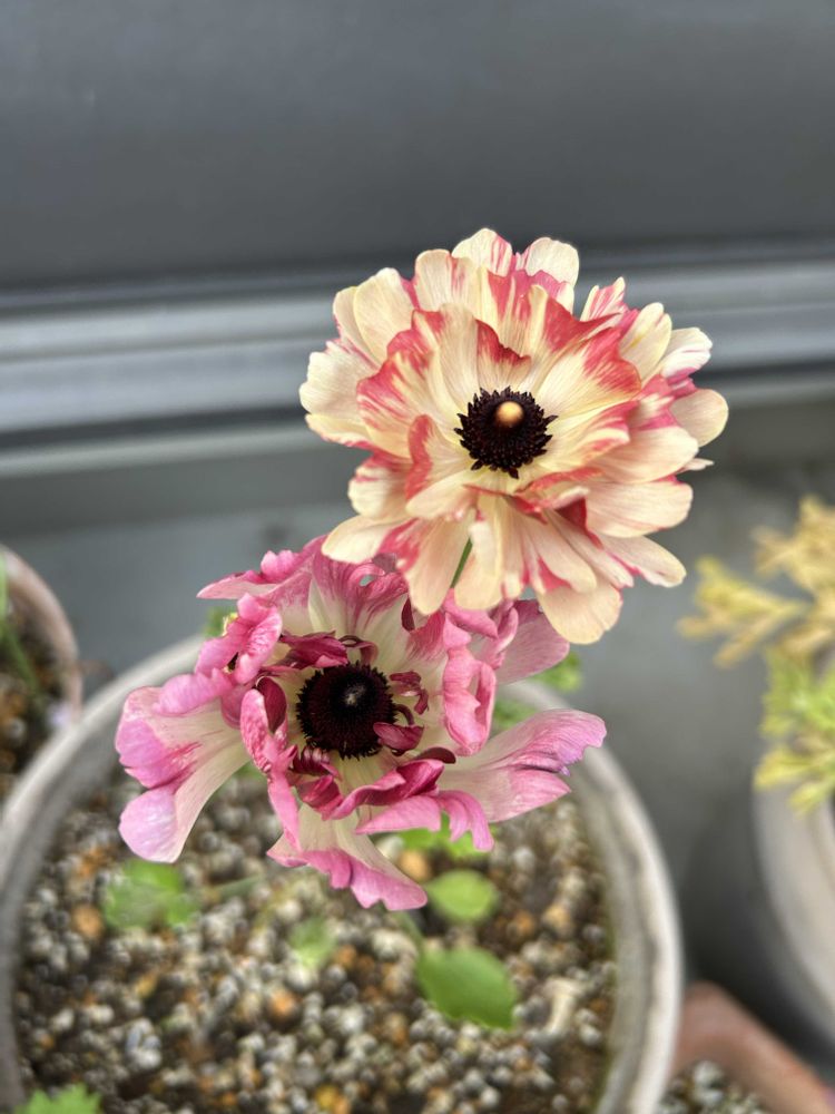 ②は昨年ゲットしたラナンキュラス とっても弱々しいお花が二輪 来年はどうなることやら😅