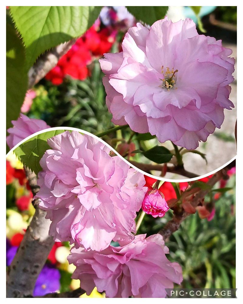 八重桜花付き買って3年花が咲かなかったけど今年は細い枝にお花が咲いた😉