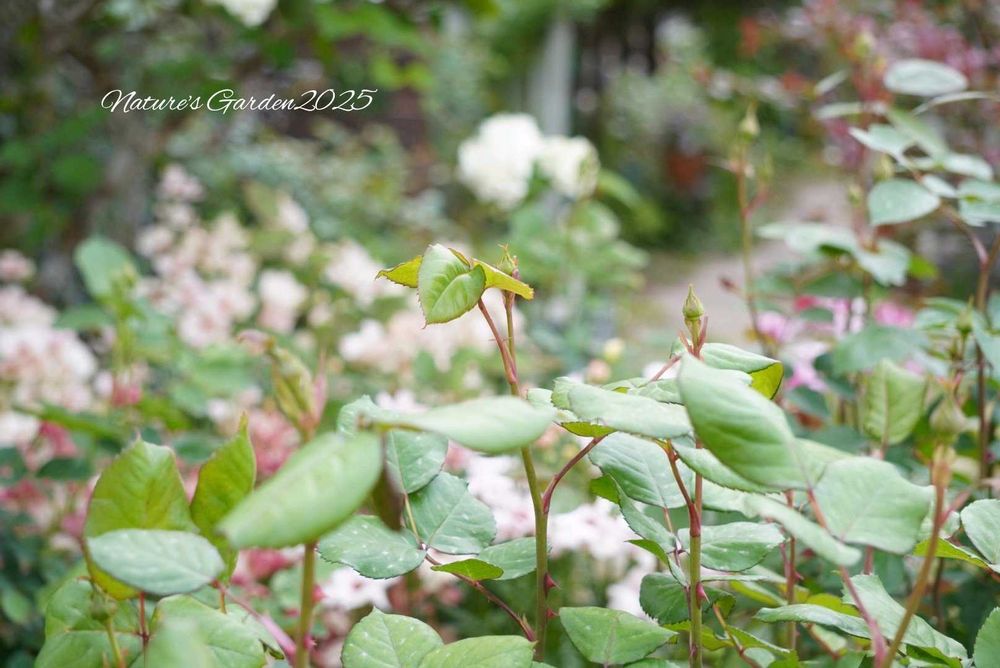 バラの開花前の緑ばかりの庭も落ち着きますね🍀🌿