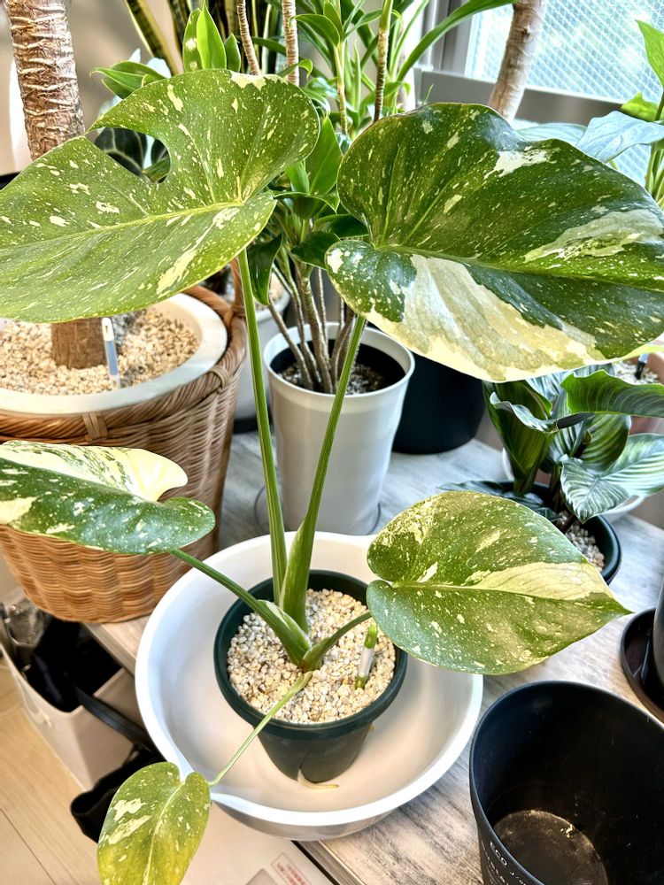 一般的な緑葉のモンステラ・デリシオーサに比べて成長はゆっくりですが、そのユニークな斑入り模様は非常に魅力的で、多くの植物愛好家にとって憧れの的となっています。また、斑入りのパターンは安定しており、斑が消えたり、完全に緑の葉に戻ったりする可能性は低いとされています。