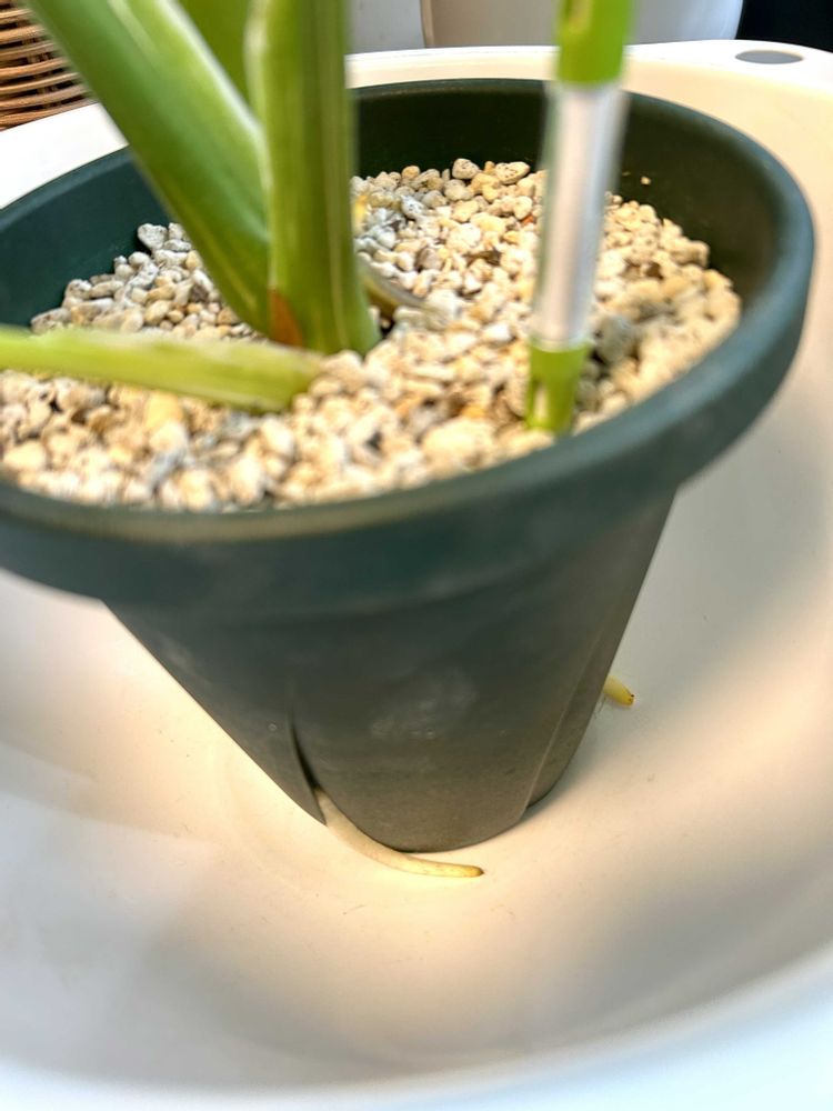 💦モンステラタイコンストレーション🇹🇭先日植替えしたばかりなのにもう脱走根が出てる🫢タイコンさんの生命力にびっくりです〜😊Geminiに聞いてみた😊