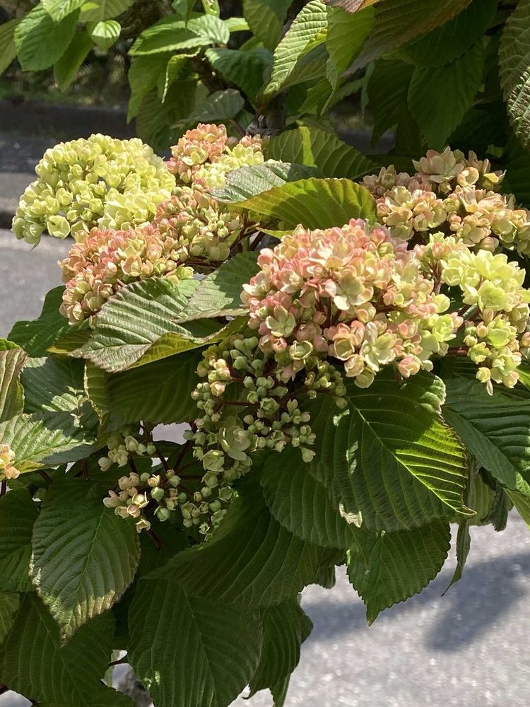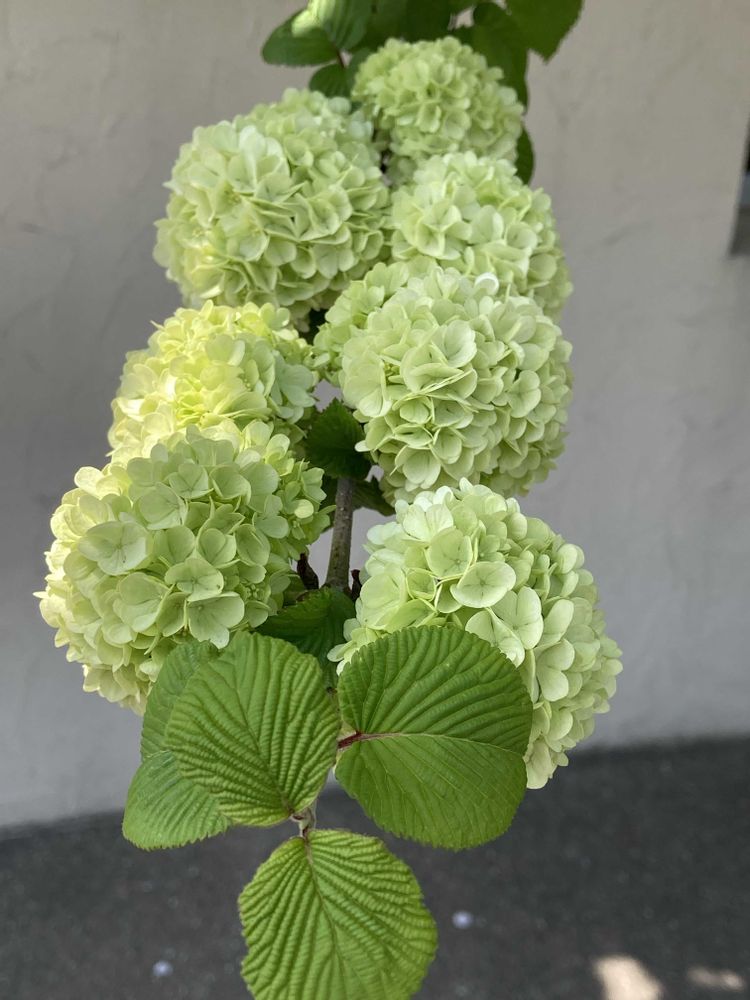 オオデマリの色は、咲き始めはライムグリーンから始まり、次第に白に変化していきます。また、品種によってはピンク色の花を咲かせるものや、白とピンクの咲き分けがあるものもあります。