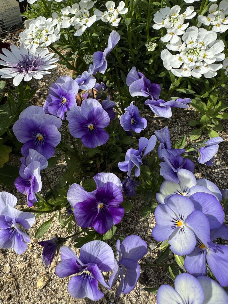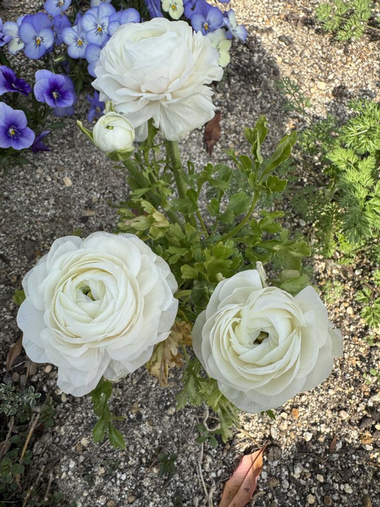 ラナンキュラス、ビオラ、マムなどいい感じに咲いております。