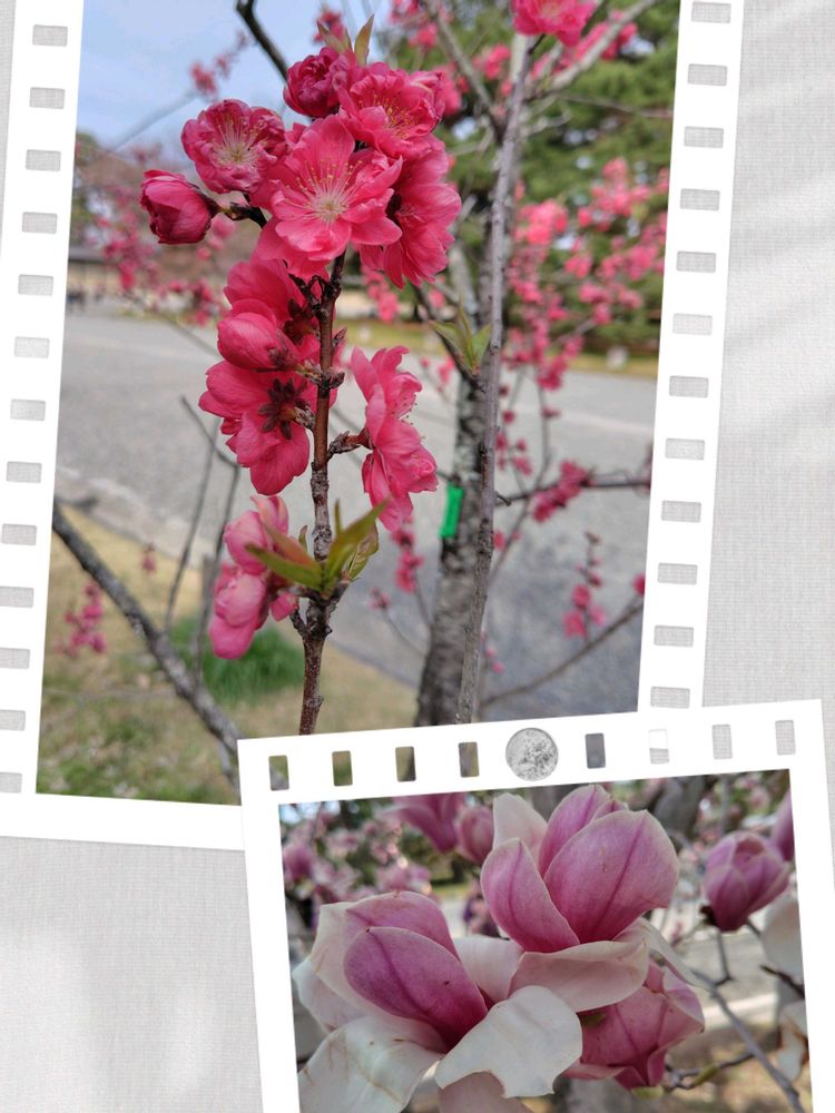 ④➄京都で出会ったミツバツツジ、ハナモモ、モクレン