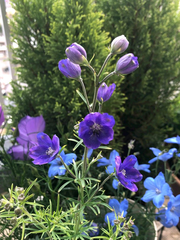 4匹の猫ママさんのデルフィニウム・シネンシス,デルフィニウム チアブルー,ベランダの花の投稿画像