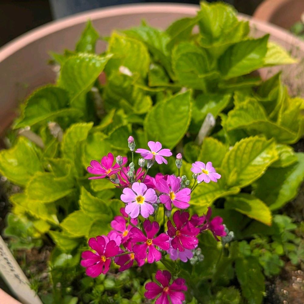 ⑤紫陽花鉢の中のプリムラマラコ
