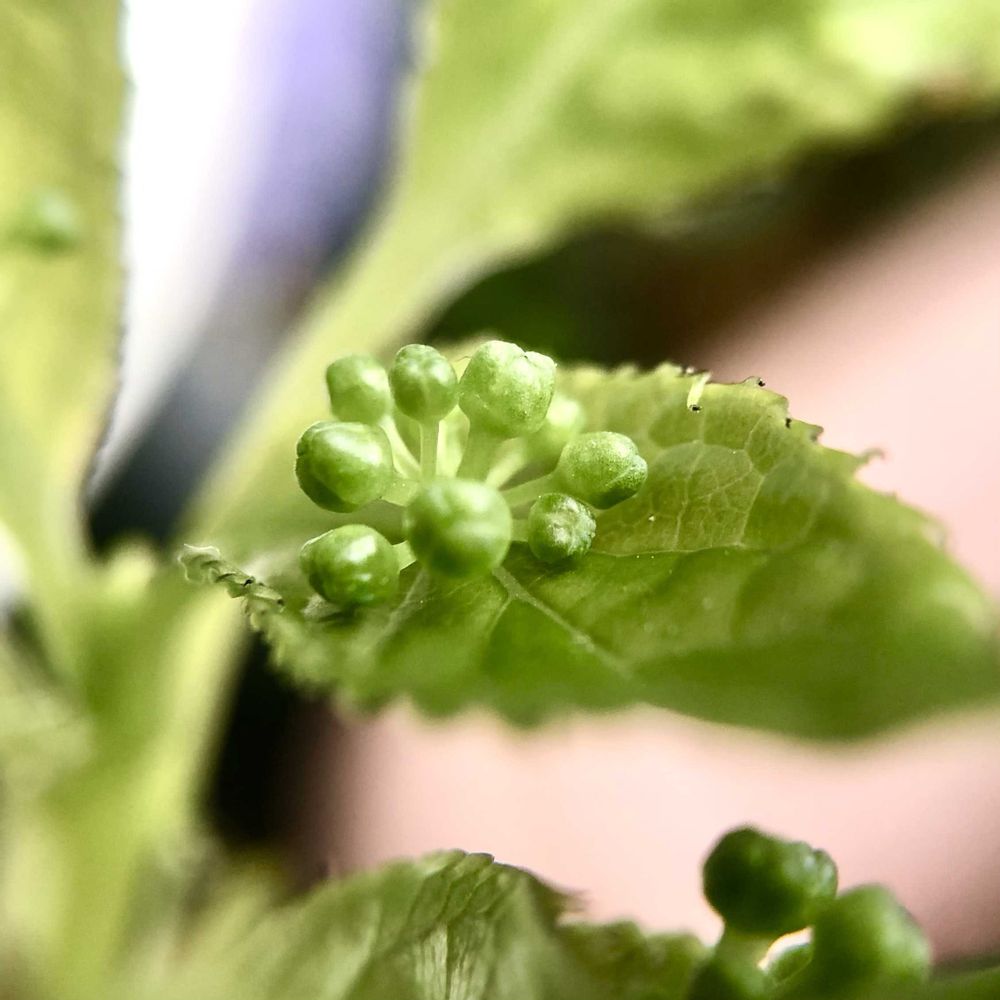 葉っぱの真ん中に今は蕾?なのかな‥花が咲き、秋には黒っぽい実がつくという