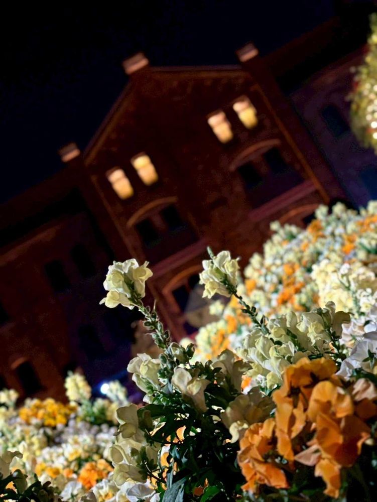 いっぱいのお花が夜になると幻想的にライトアップされてました。いっぱいのアリッサムやストックの香りが海風で運ばれてくるのはここ赤レンガならでは。
