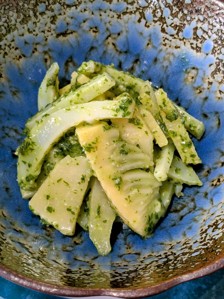 筍を頂いたので甲イカと庭の山椒の葉で木の芽和えを…