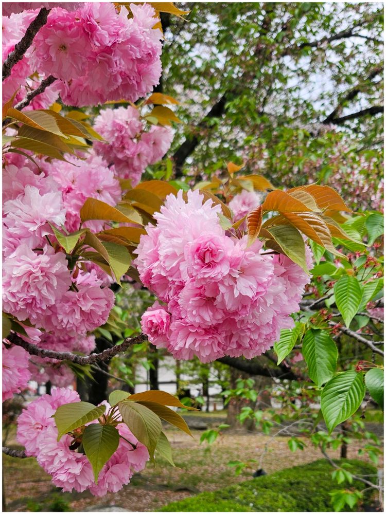 ③④東寺でもヤエザクラを堪能できました 牡丹桜という別名がぴったりですね🌸