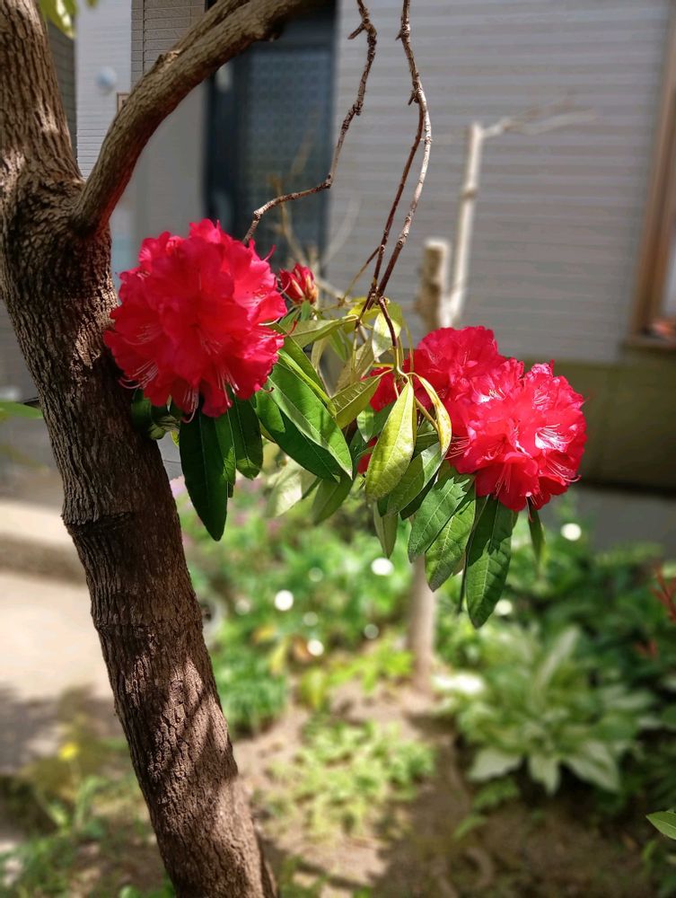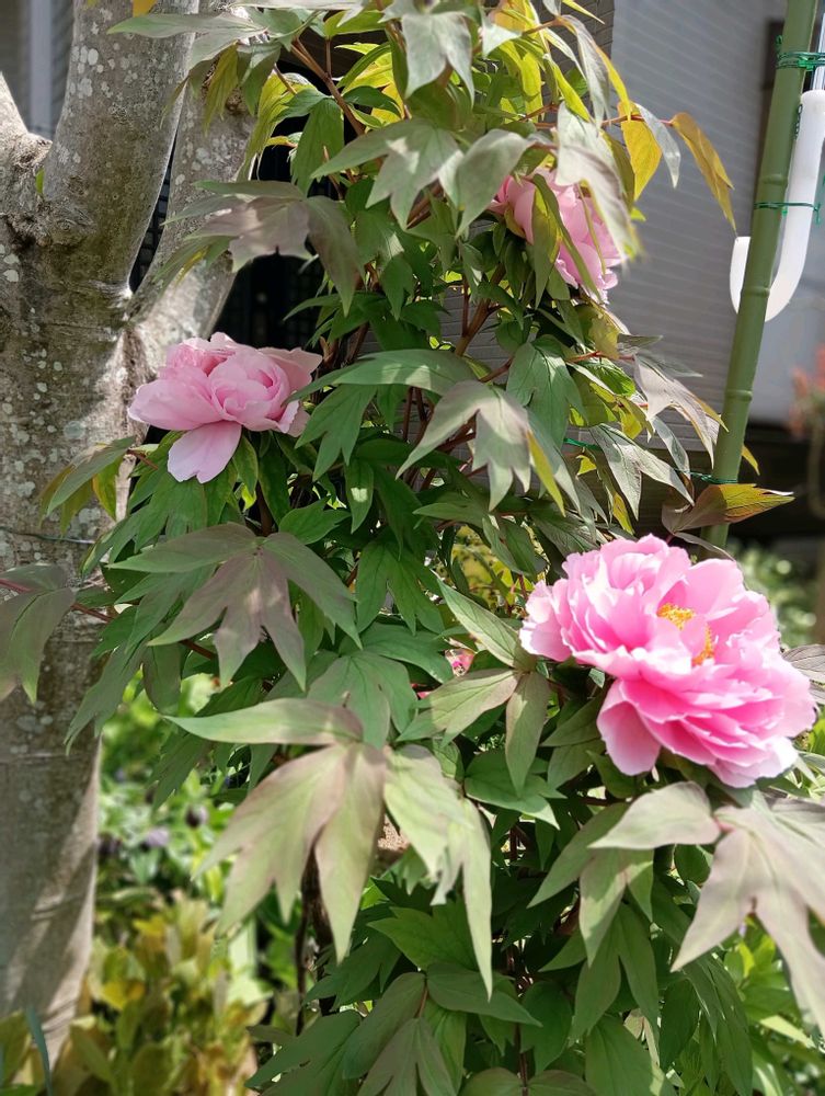 綺麗な牡丹、毎年楽しみにしています、今年も、伺いました💖💝ご近所さんのお庭です🩷良い香りが大好き、赤のシャクナゲも、陽を浴びて、綺麗🎀