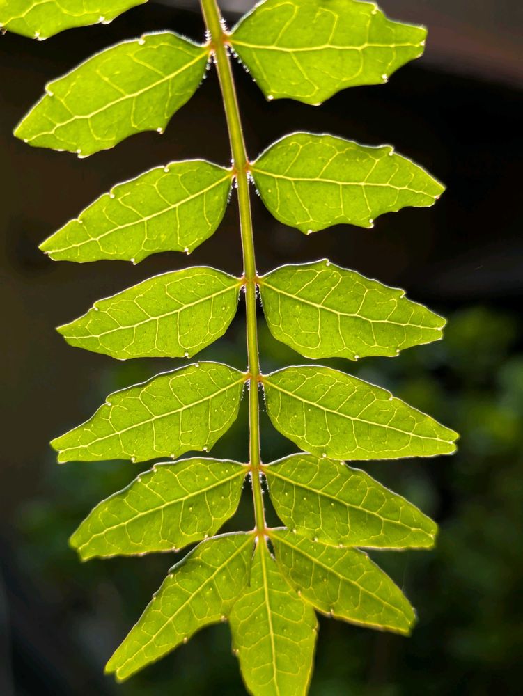 ①②サンショウの若葉 日に透けて見える油点が香りのもとです