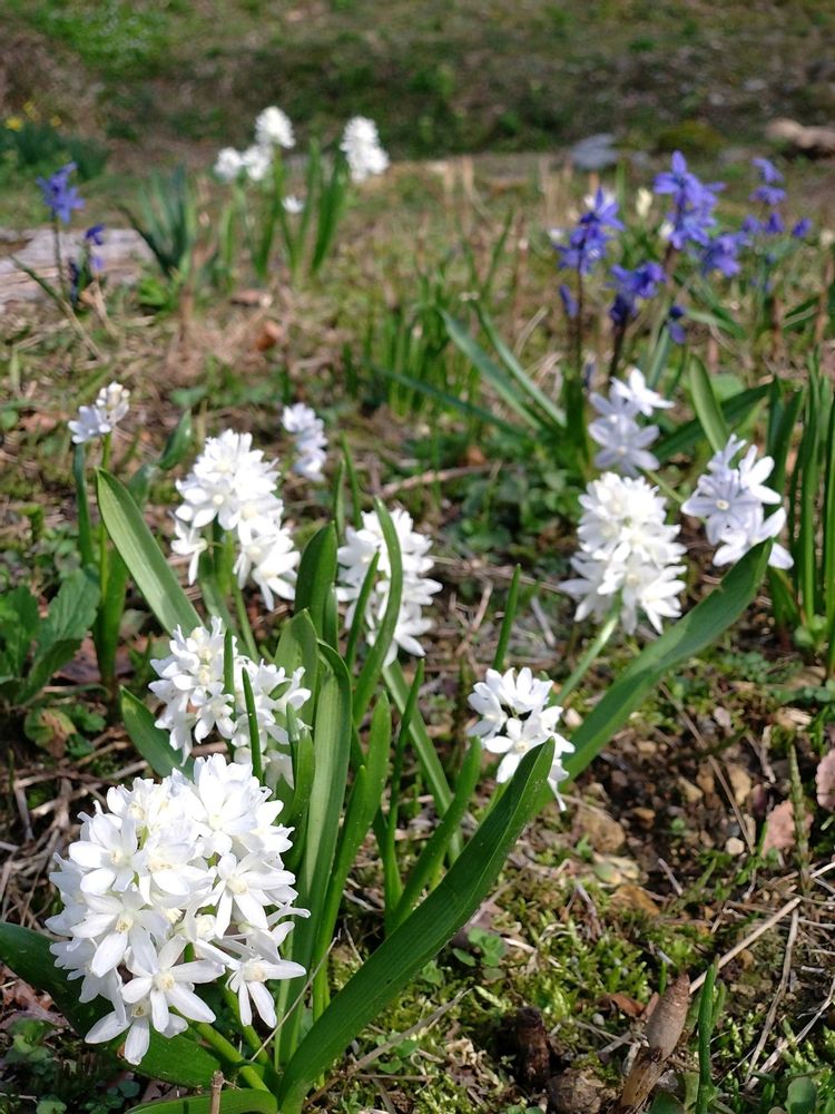 ②③ハーブガーデンのシラーとプスキニアが咲きました。