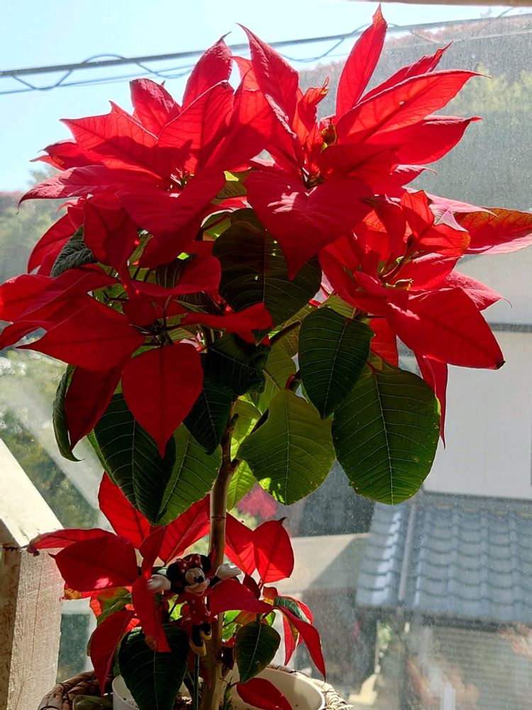 ① 昨年暮に迎えた『ポインセチア』元気です❣️大きい鉢に植え替えよぅかなぁ🤔💭