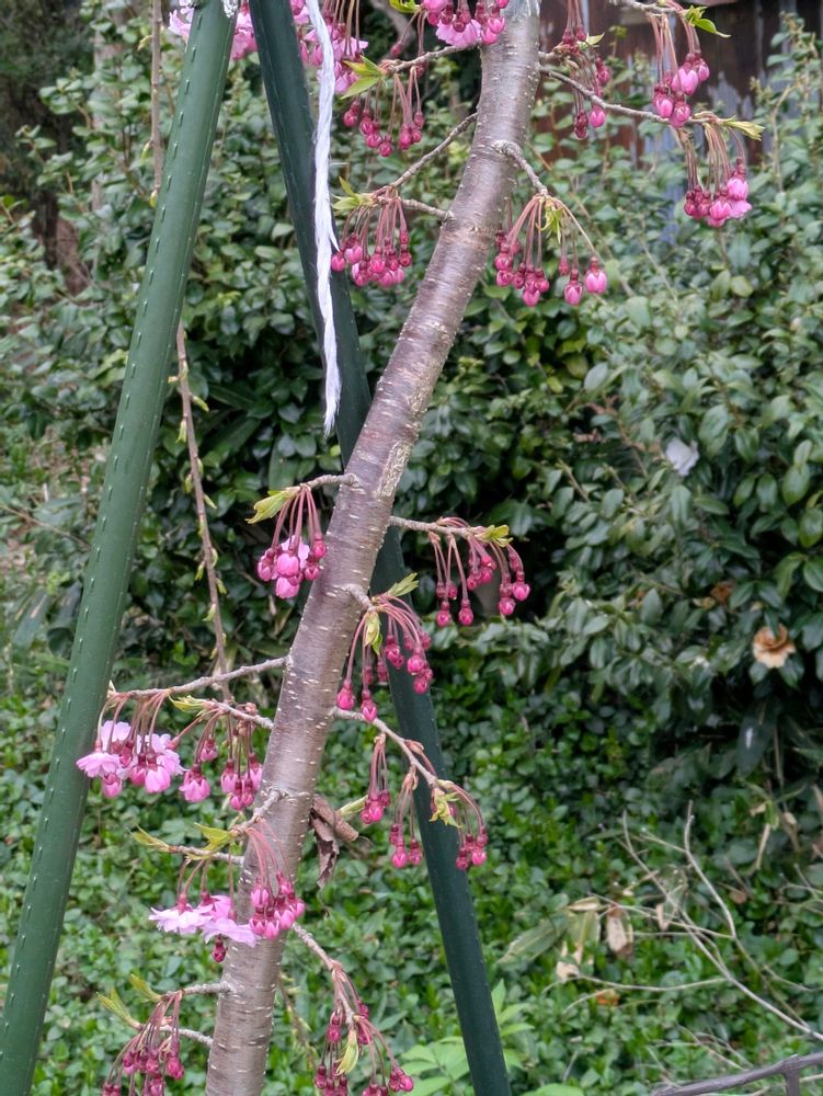 我が家の枝垂れ桜開花宣言です😃💕