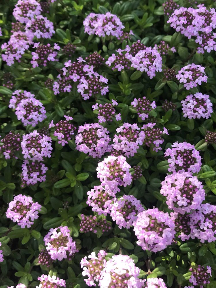 タイムは小さい株だったのが約一年でこれくらい広がりました 夏も冬もたくましく越えて増えてくれて、ありがたいお花です😊