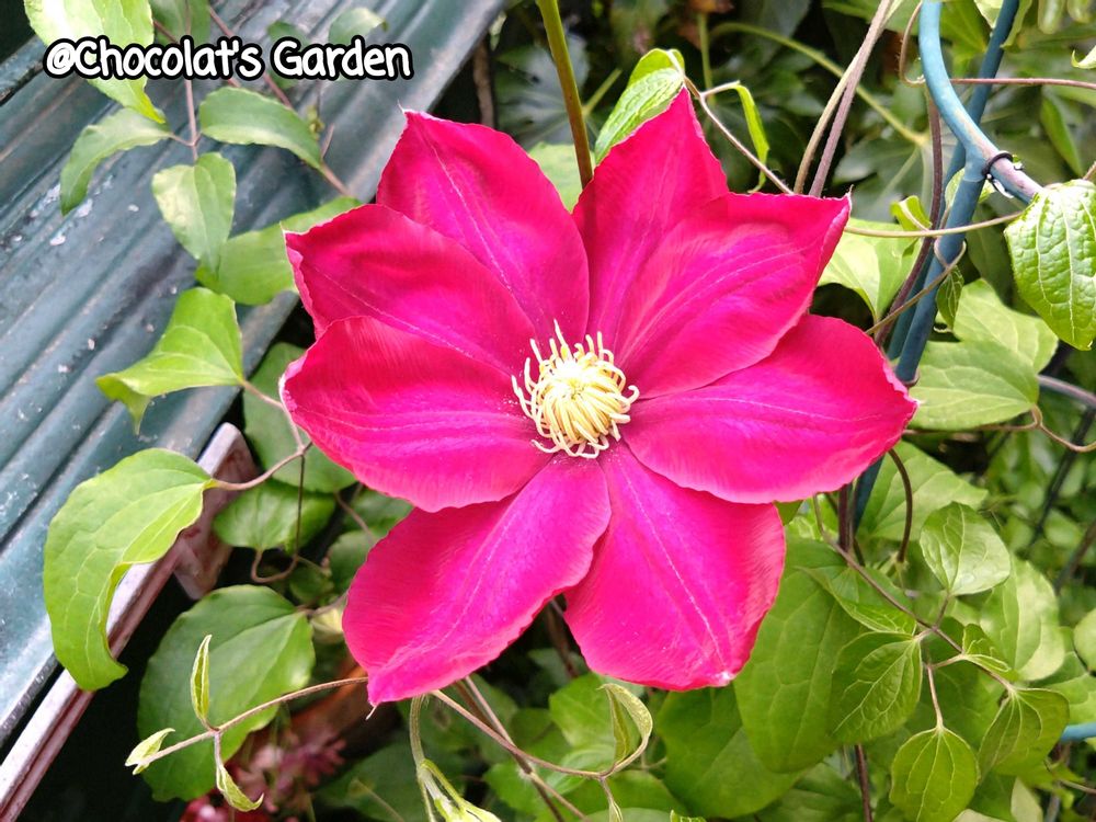 ①真っ赤なクレマチス咲きました。いつも通りの順番です