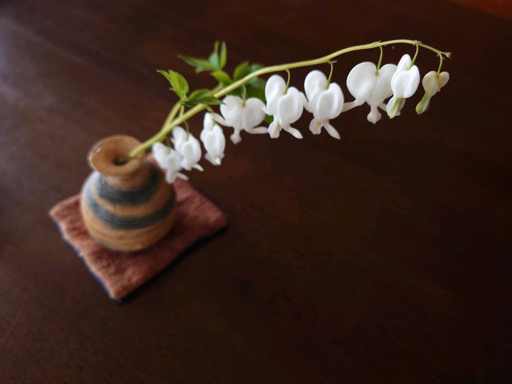 お庭の涼し気なタイツリソウと一華を飾ってみました🤍